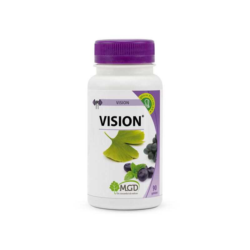 Le complexe Vision associe des extraits végétaux (spiruline, myrtille, ginkgo et raisin), des vitamines (A, B2, C et E), des oligo-éléments (zinc et sélénium), des caroténoïdes (lutéine, zéaxanthine et astaxanthine) et des flavonoïdes (quercétine).
